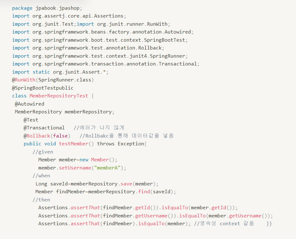 - @RunWith: applicationcontext를 어노테이션에 있는 class로 설정